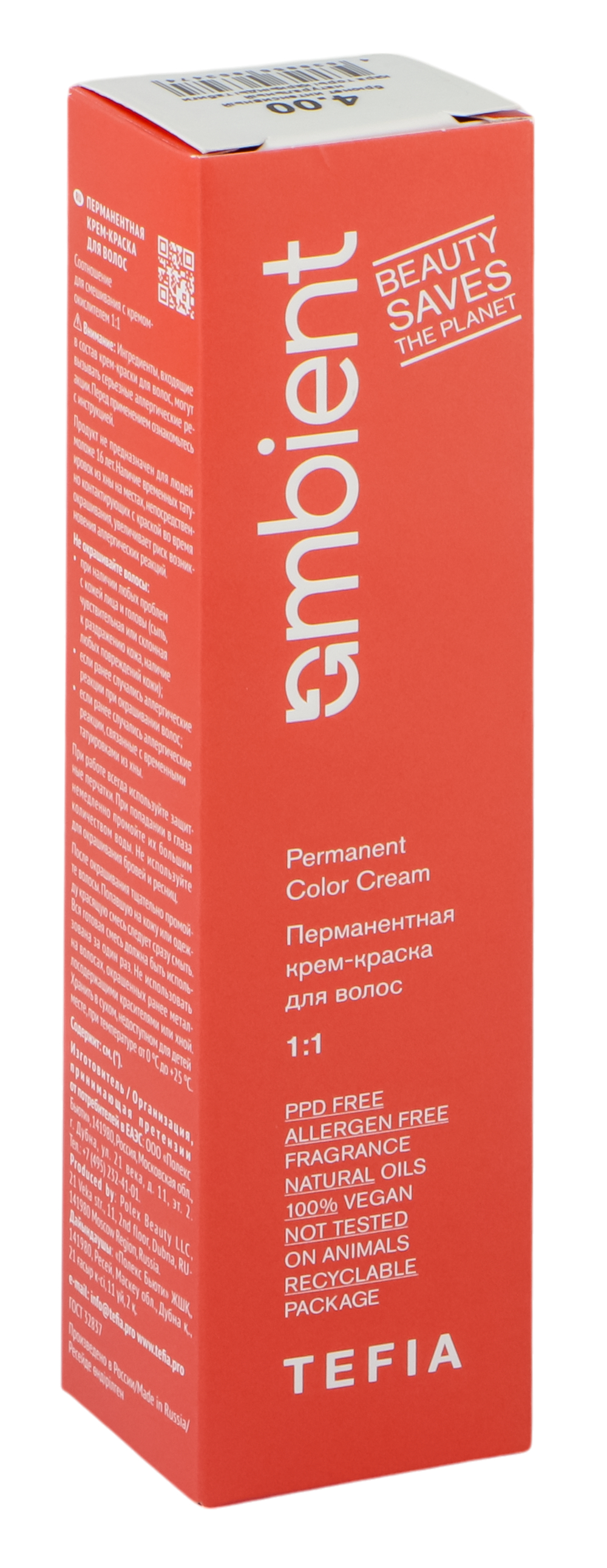 Для перманентного окрашивания, классического тонирования, окрашивания тон в тон, а также осветления волос: смешайте краску в пропорции 1:1 или 1:2 с крем-окислителем Tefia Ambient Oxycream до получения однородной красящей смеси согласно инструкции.Состав