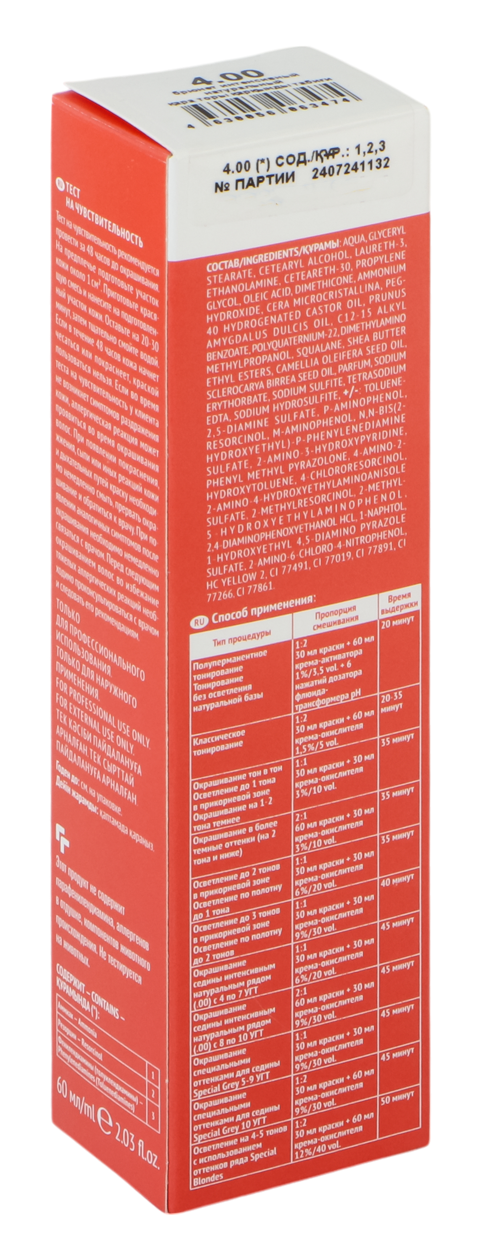 | Оттенок | 4.00, брюнет интенсивный натуральный |