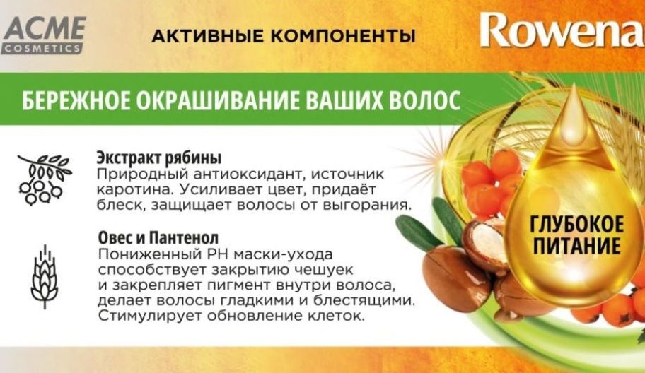 Стойкая крем-краска "Rowena" – это здоровые, мягкие, шелковистые волосы. Кремовая текстура краски легко наносится и глубоко проникает в структуру волоса, обеспечивая 100% закрашивание седины, а входящие в состав экстракт рябины, кератин и масло арганы усиливают цвет, придают блеск, защищают и укрепляют волосы.