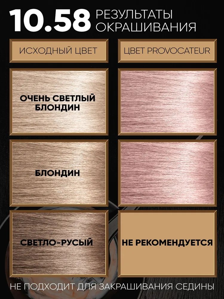 Стойкая безаммиачная крем-краска для волос PROVOCATEUR COULEUR – это неповторимая игра цвета в сочетании с ухоженностью и роскошным блеском. Завораживающие оттенки делают акцент на вашей индивидуальности, а мягкая формула без аммиака создает мультитональное покрытие с чувственным, бескомпромиссным сиянием. Коллекция PROVOCATEUR Couleur – цвет haute-couture для ваших волос!