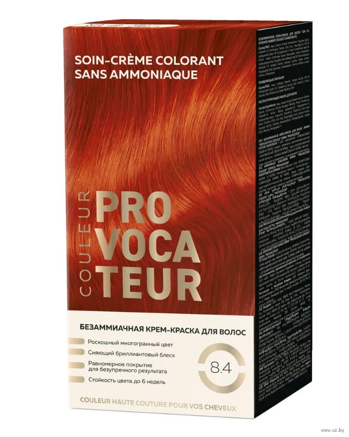 Стойкая безаммиачная крем-краска для волос PROVOCATEUR COULEUR – это неповторимая игра цвета в сочетании с ухоженностью и роскошным блеском. Завораживающие оттенки делают акцент на вашей индивидуальности, а мягкая формула без аммиака создает мультитональное покрытие с чувственным, бескомпромиссным сиянием. Коллекция PROVOCATEUR Couleur – цвет haute-couture для ваших волос!