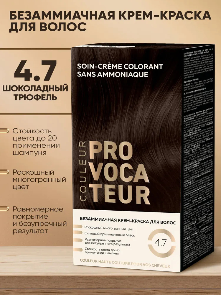 Стойкая безаммиачная крем-краска для волос PROVOCATEUR COULEUR – это неповторимая игра цвета в сочетании с ухоженностью и роскошным блеском. Завораживающие оттенки делают акцент на вашей индивидуальности, а мягкая формула без аммиака создает мультитональное покрытие с чувственным, бескомпромиссным сиянием. Коллекция PROVOCATEUR Couleur – цвет haute-couture для ваших волос!