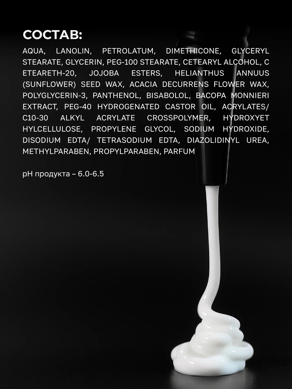 Аqua, lanolin, petrolatum, dimethicone, glyceryl stearate, glycerin, peg-100 stearate, cetearyl alcohol, сeteareth-20, jojoba esters, helianthus annuus (sunflower) seed wax, acacia decurrens flower wax, polyglycerin-3, panthenol, bisabolol, bacopa monnieri extract, peg-40 hydrogenated castor oil, acrylates/c10-30 alkyl acrylate crosspolymer, hydroxyethylcellulose, propylene glycol, sodium hydroxide, disodium edta/tetrasodium edta, diazolidinyl urea, methylparaben, propylparaben, parfum.Мы используем файлы cookie для обеспечения удобства работы с сайтом и его контакта с пользователем.