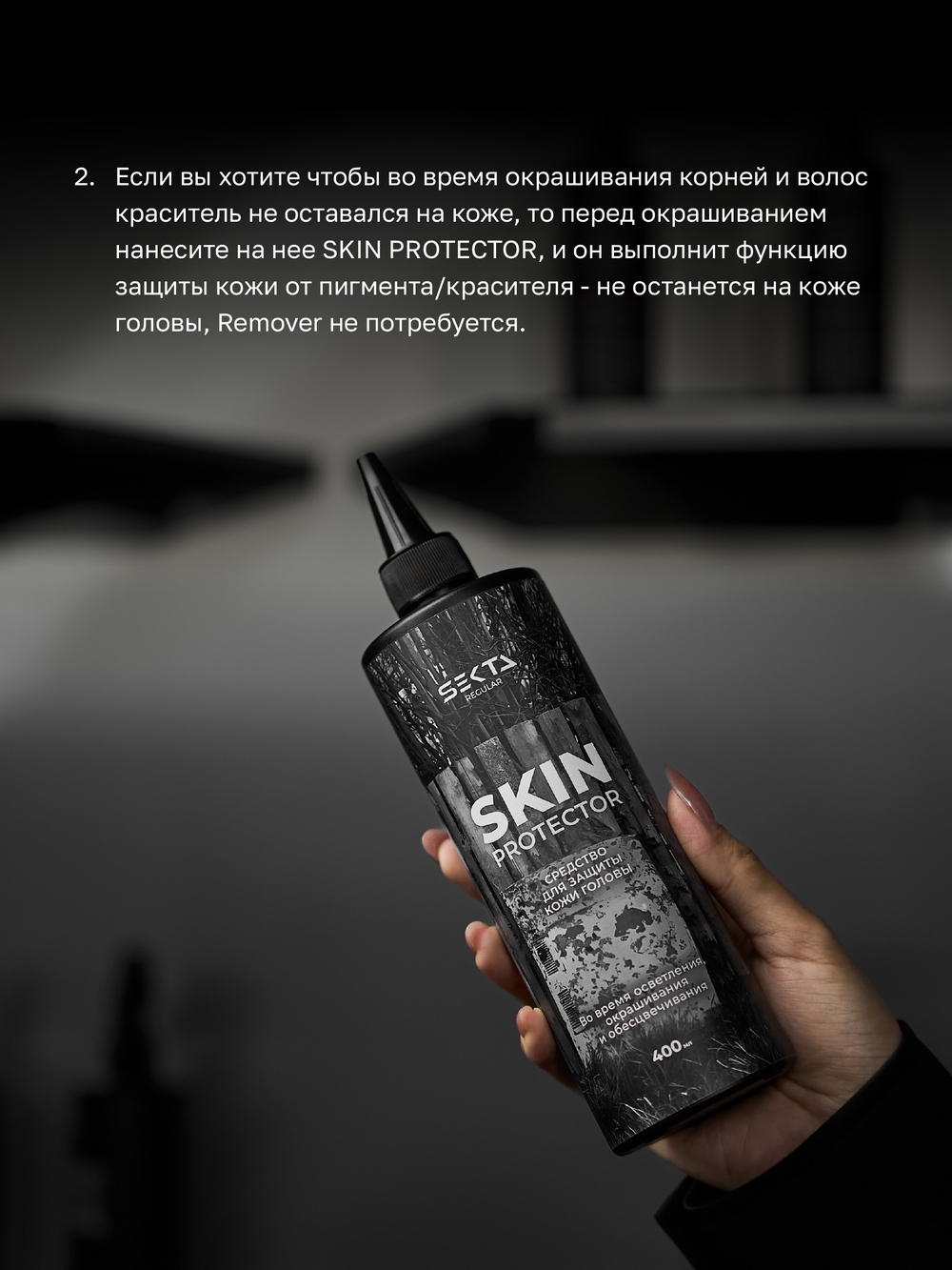 Крем разработан для профессиональной защиты кожи головы, лица и краевой линии от химического воздействия во время окрашивания, осветления или обесцвечивания волос. Он оказывает регенерирующее и противовоспалительное действие, предотвращает ожоги, зуд и аллергические реакции.