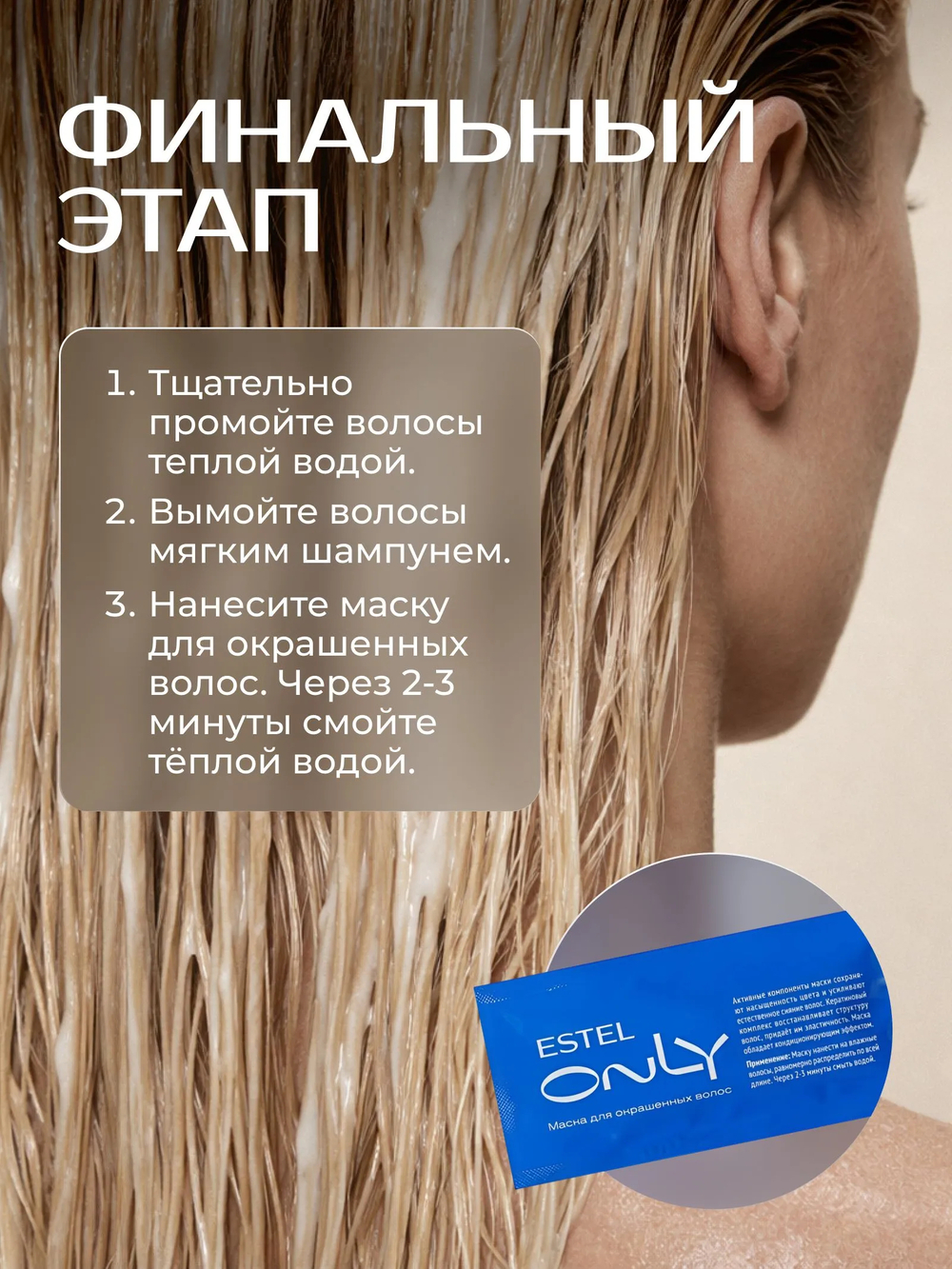 Входящая в комплект маска для окрашенных волос создаёт защитную оболочку вокруг волоса, делает цвет более глубоким и сияющим. Волосы приобретают гладкость, эластичность и наполняются бриллиантовым сиянием.