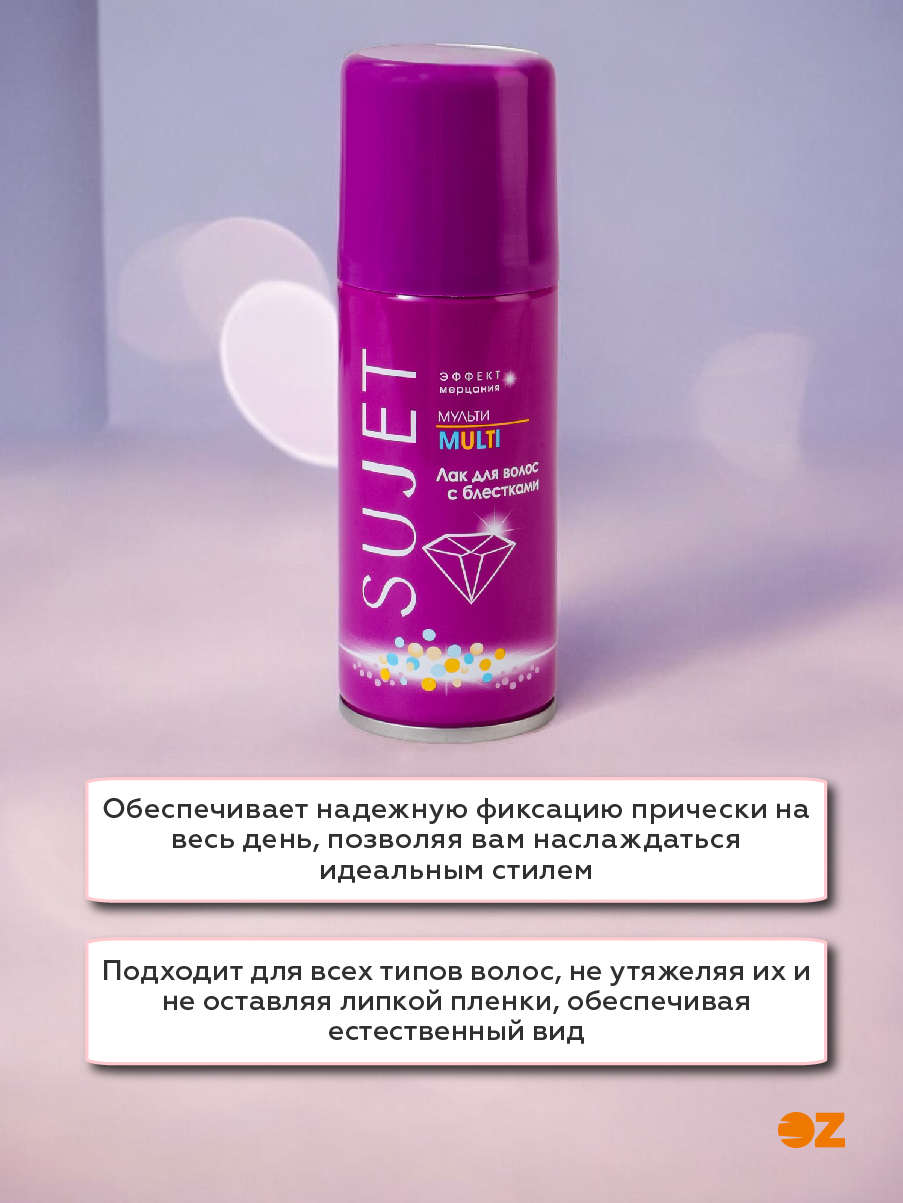 Лак "Сюжет" мульти не только зафиксирует вашу причёску, но и благодаря блёсткам предаст невероятное сияние. Средство содержит декоративные блёстки, благодаря которым вы будете сиять. Несмотря на небольшой объём, его хватает на долгое время.