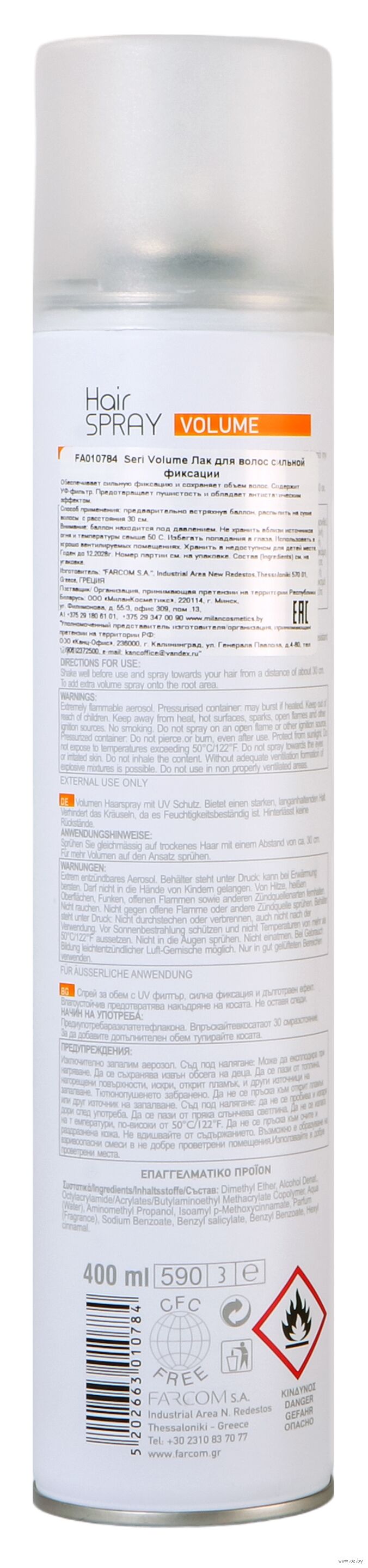 Лак содержит UV фильтры, предотвращает появление завитков – anti-frizz защита .