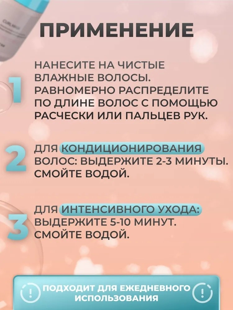 Увлажняющая маска для вьющихся и волнистых волос, а также волос с перманентной завивкой. Распутывает и питает волосы, эффективно устраняет пушистость. Укрепляет локоны, оставляя их четкими и эластичными, не утяжеляя их.