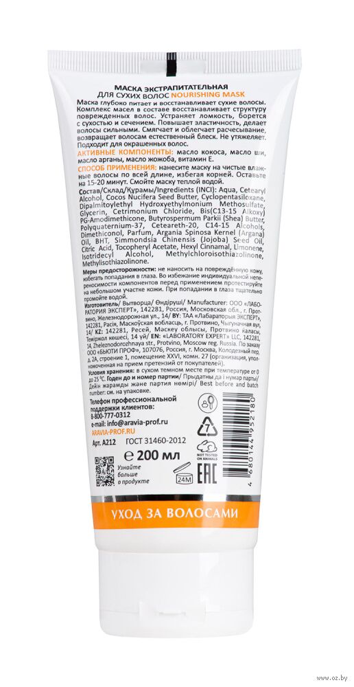 Маска глубоко питает и восстанавливает сухие волосы. Комплекс масел в составе восстанавливает структуру поврежденных волос.