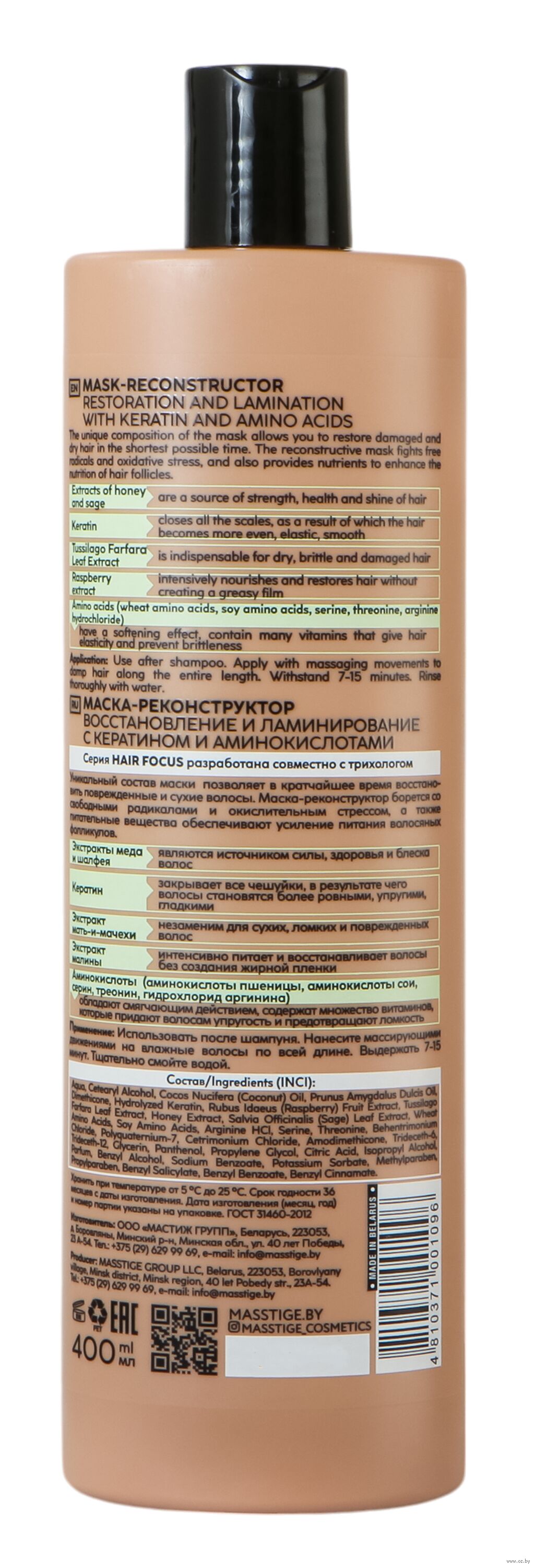 Маска-реконструктор для волос "Восстановление и ламинирование" (400 мл)