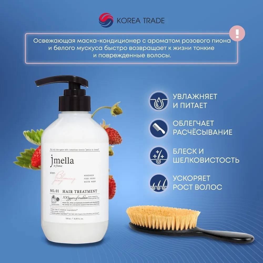 Освежающая маска-кондиционер с ароматом розового пиона и белого мускуса быстро возвращает к жизни тонкие и поврежденные волосы. Она увлажняет, выравнивает их, делая гладкими, послушными и шелковистыми. Облегчает расчесывание и укладку. Стимулирует луковицы, ускоряя рост волос, насыщая их витаминами и минералами.
