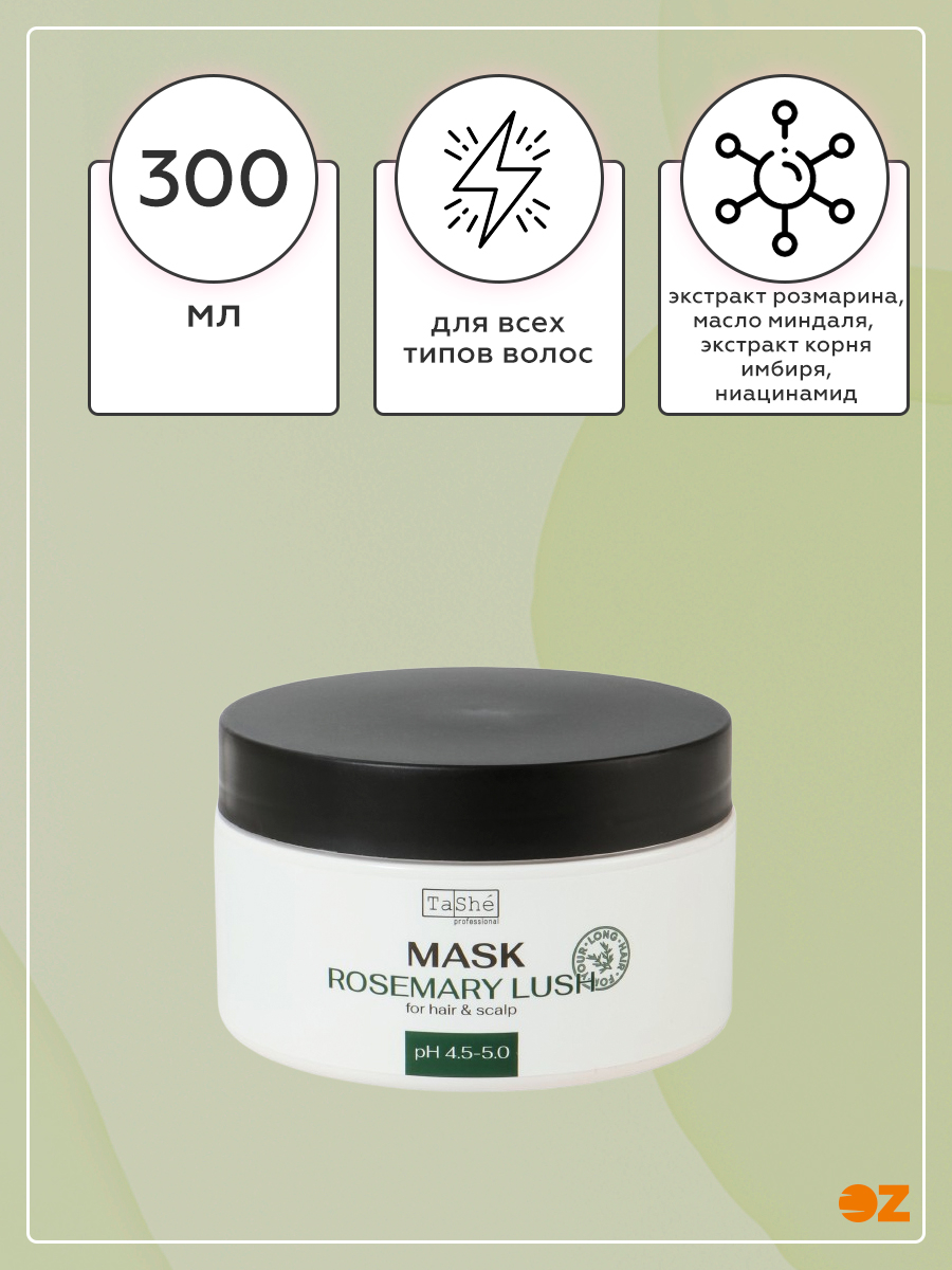 Маска с экстрактом розмарина укрепляет корни, способствует росту здоровых волос и придает объем без утяжеления. Волосы станут напитанными, рассыпчатыми и блестящими.