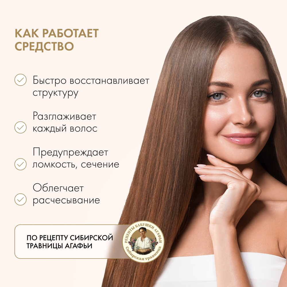 Aqua with infusions of: Avena Sativa Oat (овсяные отруби), Betula Alba Juice (березовый сок); enriched by extracts: Salvia Officinalis (шалфей), Rubus Chamaemorus (морошка), Rhodiola Rosea (родиола розовая); Cetrimonium Chloride, Cetearyl Alcohol, Ceteareth-20, Guar Gum (камедь рожкового дерева); cold pressed oils: Arctium Lappa Seed Oil (репейное масло), Ribes Nigrum Seed Oil (масло семян черной смородины), Linum Usitassimum Seed Oil (льняное масло); Pyridoxine (витамин B6), Panthenol (витамин B5), Niacinamide (витамин PP), Citric Acid, Parfum, Benzoic Acid, Sorbic Acid.