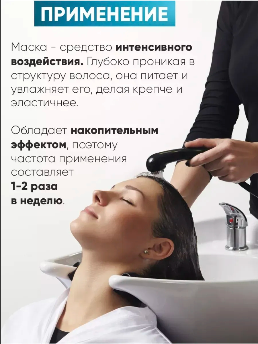 Использовать 1-2 раза в неделю. Нанести на чистые, отжатые волосы, отступив от корней на 2-3 см. Оставить на 5 -10 минут. Тщательно смыть.Состав