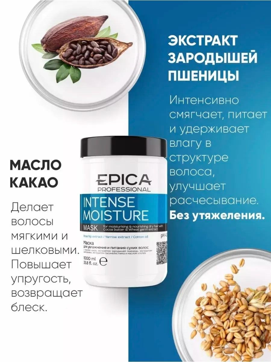 Маска с маслом какао и экстрактом зародышей пшеницы интенсивно смягчает, питает и удерживает влагу в структуре волоса. Повышает упругость, возвращает естественный блеск, оказывает кондиционирующее действие.