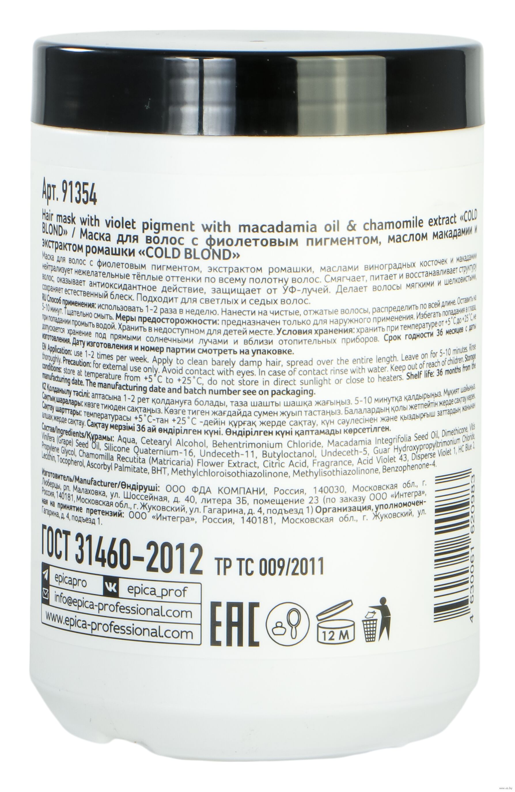 Маска для волос с фиолетовым пигментом "Cold Blond" (1000 мл)