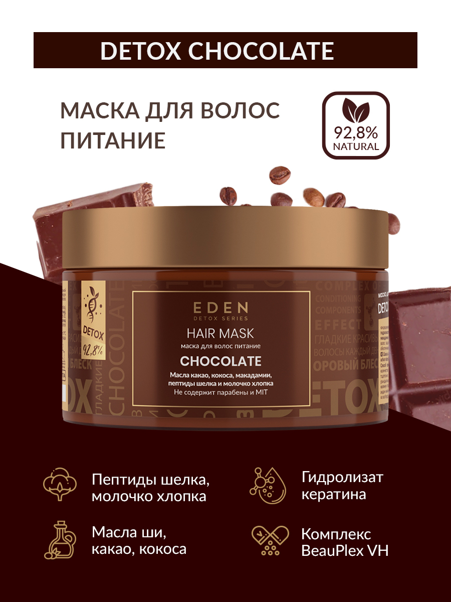 Благодаря формуле с натуральными ингредиентами – гидролизатом кератина, экстрактами пептидов шелка, экстрактами молочка хлопка, кофеином, маслами какао, макадамии и кокоса – маска способствует укреплению и увлажнению волос, образует на поверхности волос защитный слой, придающий волосам блеск и эластичность.