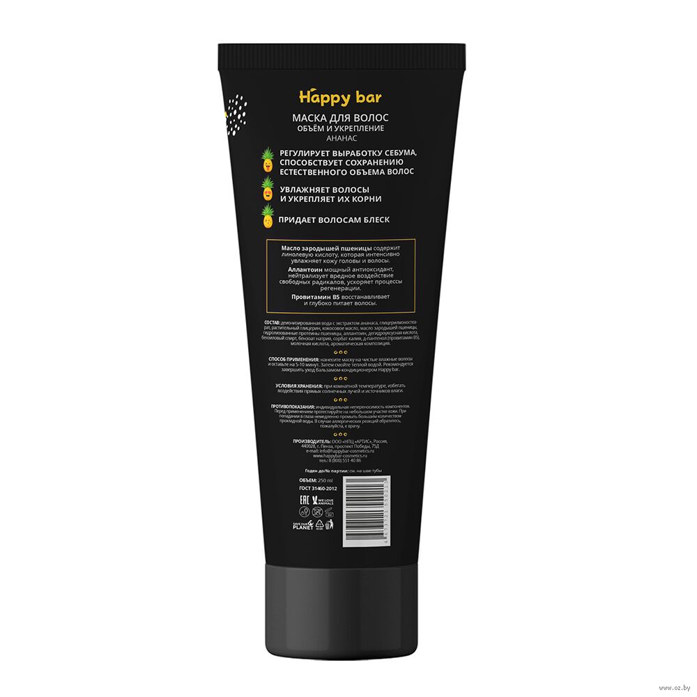 Нанесите маску на чистые влажные волосы и оставьте на 5-10 минут. Затем смойте теплой водой. Рекомендуется завершить уход бальзамом-кондиционером Happy bar.Состав