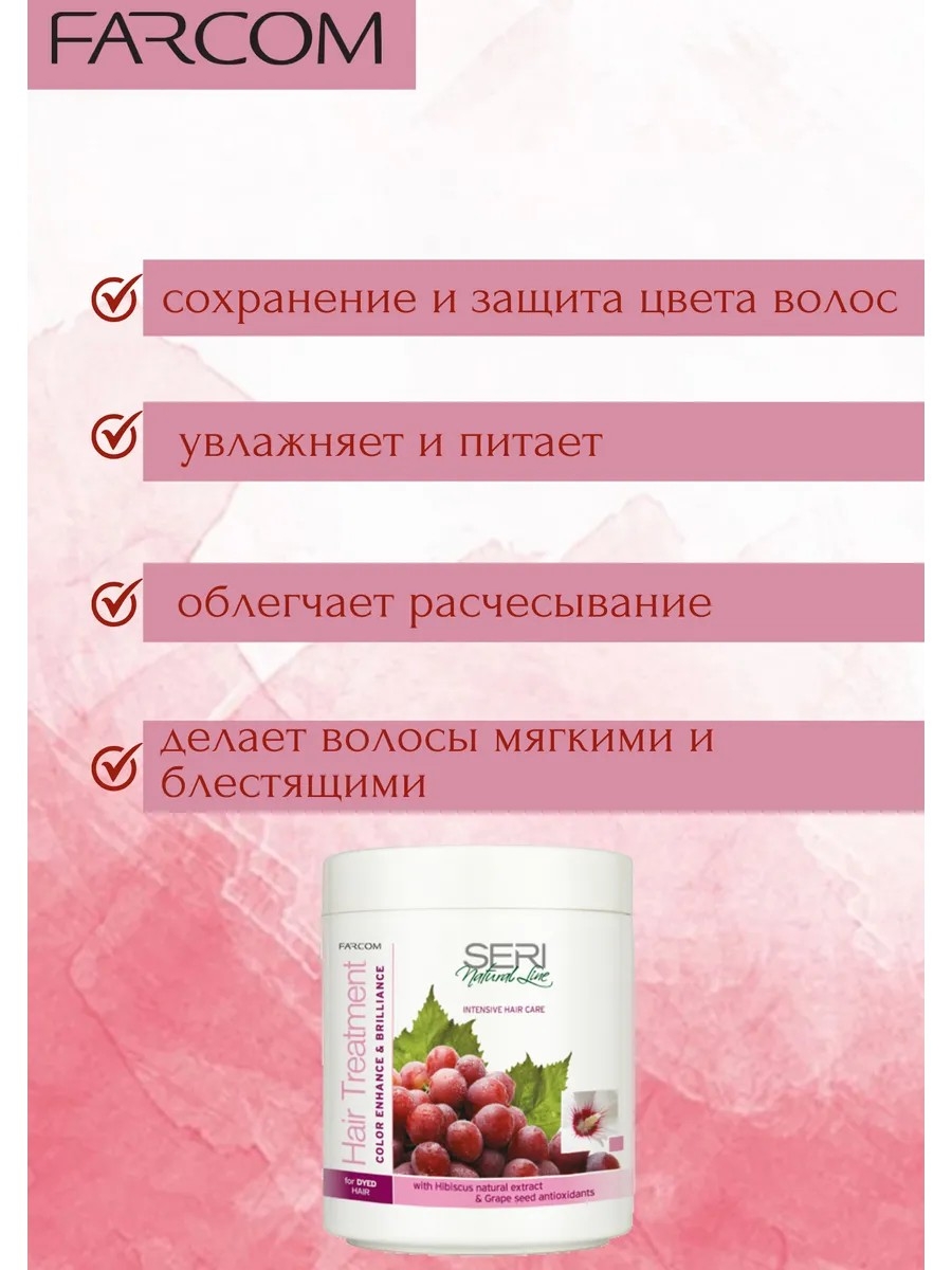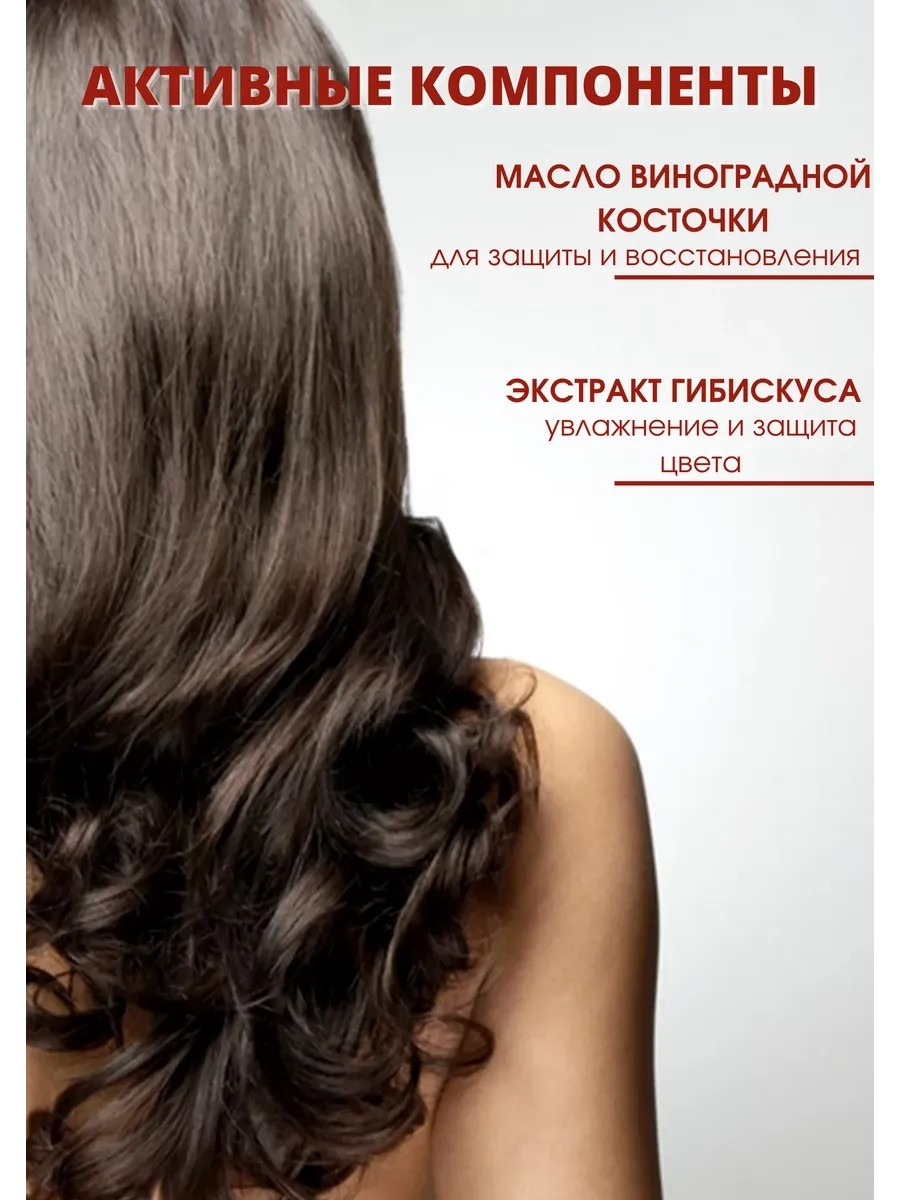 Интенсивное восстановление волос с экстрактом гибискуса, который богат фруктовыми кислотами, а также увлажняющими компонентами и антиоксидантами, содержащимися в косточках винограда, которые действуют как защитный щит против негативного воздействия окружающей среды. Натуральные компоненты защищают цвет, возвращая волосам блеск и здоровый вид.