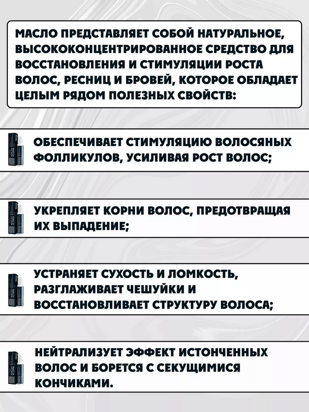 Масло усьмы – ценнейший продукт, который изготавливают путем прессования (холодного отжима). Масло представляет собой натуральное, высококонцентрированное средство для восстановления и стимуляции роста волос, ресниц и бровей, которое обладает целым рядом полезных свойств: Обеспечивает стимуляцию волосяных фолликулов, усиливая рост волос. Укрепляет корни волос, предотвращая их выпадение. Устраняет сухость и ломкость, способствует разглаживанию чешуек и восстановлению структуры волос. Нейтрализует эффект истонченных волос и борется с секущимися кончиками.