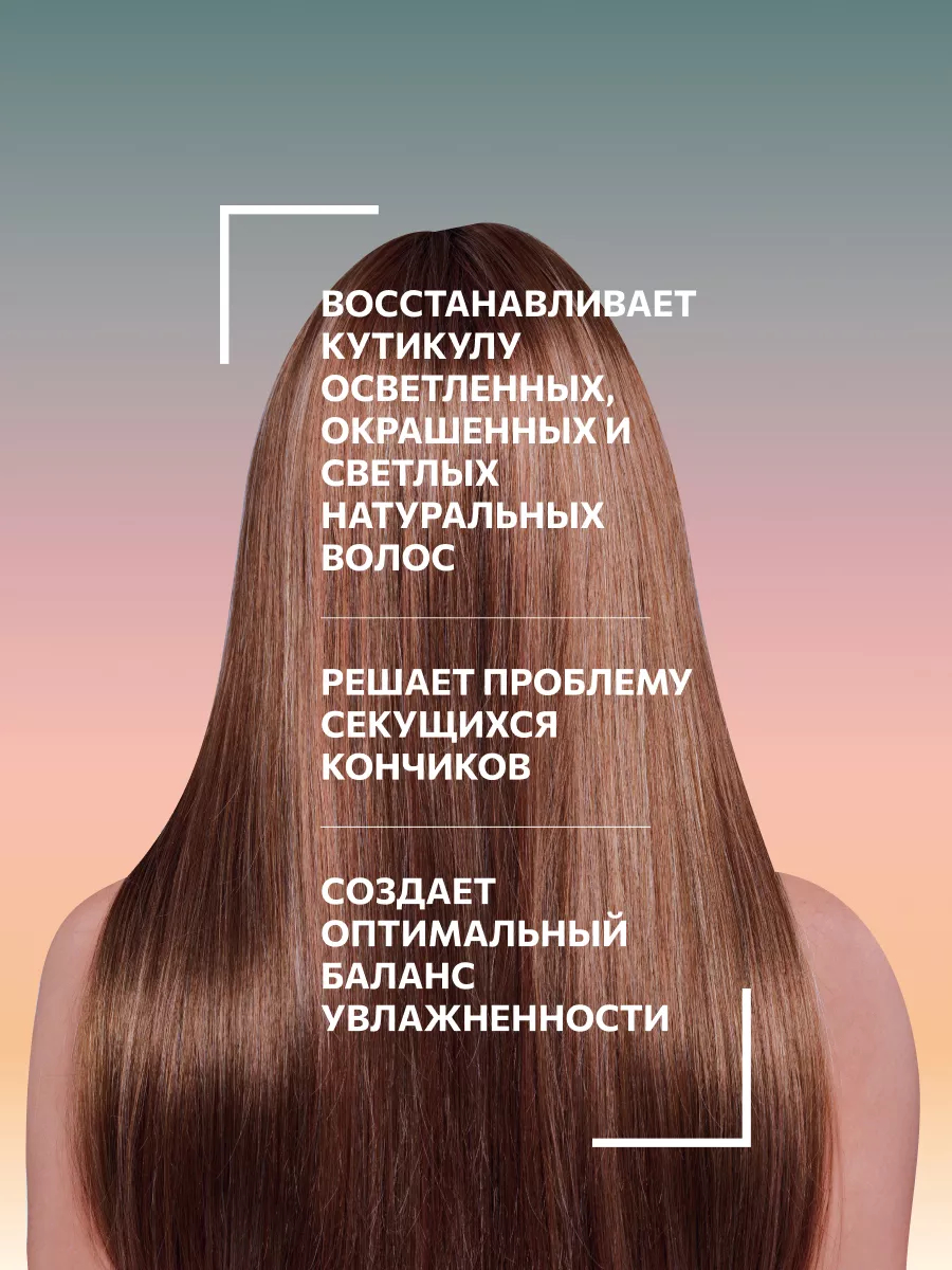 Легкое масло восстанавливает кутикулу осветленных, окрашенных и светлых натуральных волос. Решает проблему секущихся кончиков. Создает оптимальный баланс увлажненности.