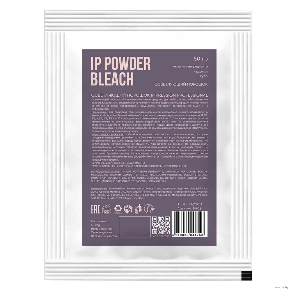 Для получения обесцвечивающей смеси необходимо смешать проявляющую эмульсию Impression Professional в необходимой для техники окрашивания концентрации (1,5%, 3%, 4,5%, 6%, 9% или 12%) и порошок в соотношении от 1:2 до 1:7.Состав