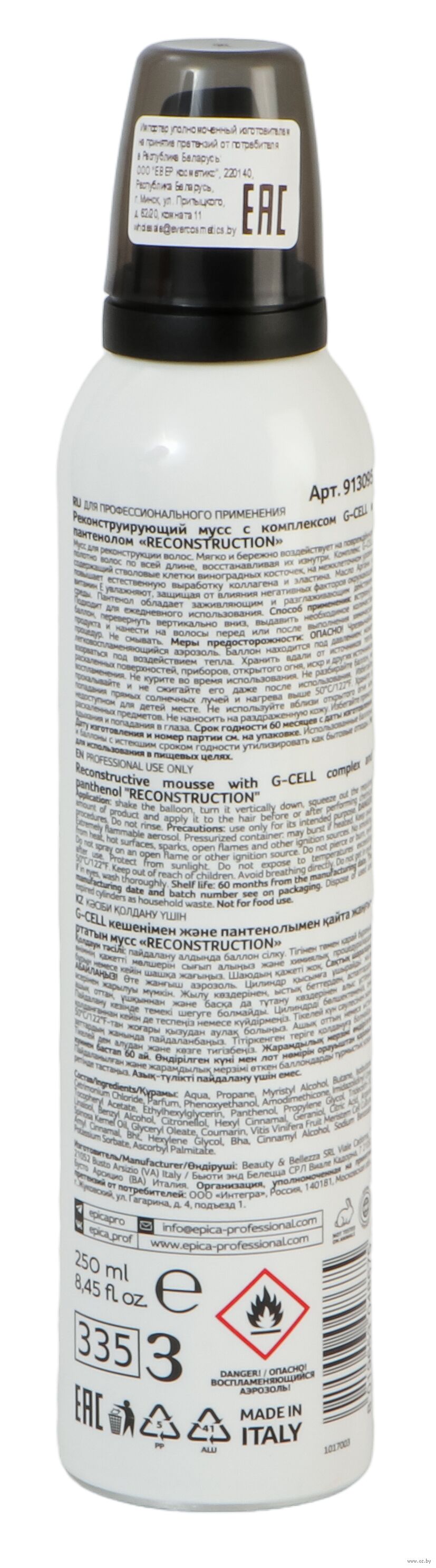 Мусс для реконструкции волос. Мягко и бережно воздействует на поврежденное полотно волос по всей длине, восстанавливая их изнутри.