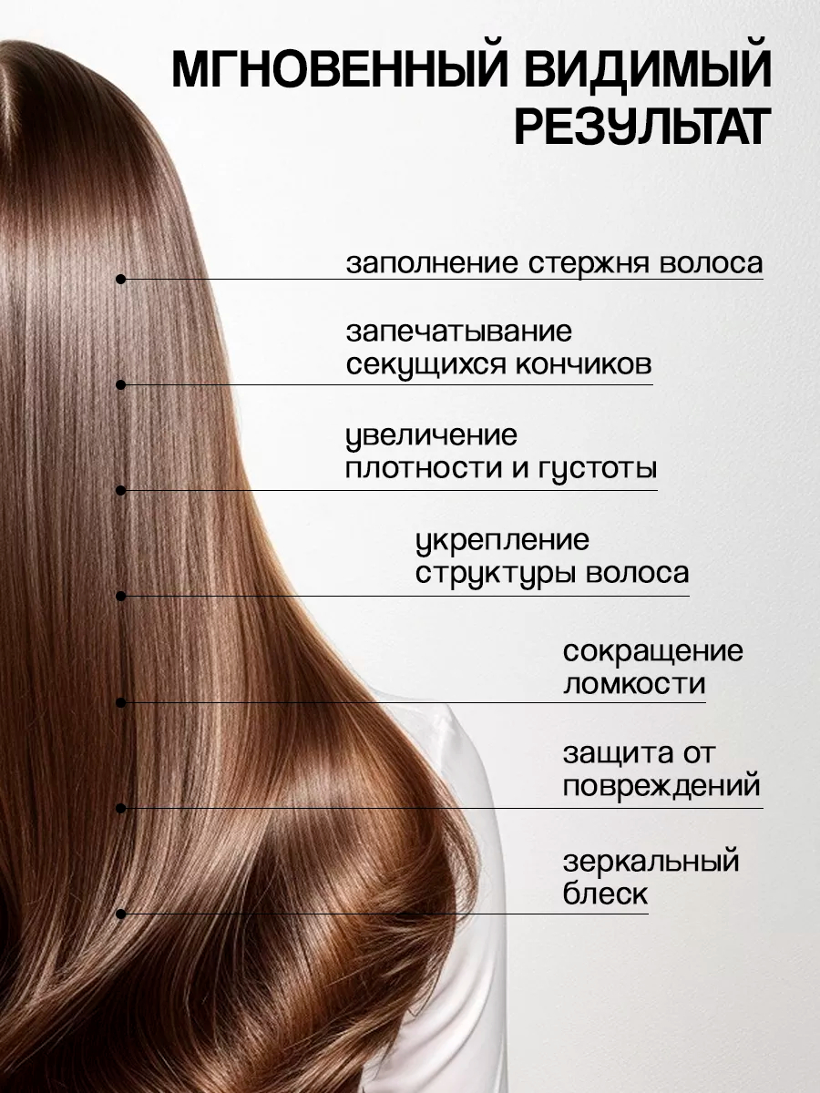| Эффект | Восстановление, ламинирование, легкое расчесывание, мягкость, объем, укрепление, шелковистость |