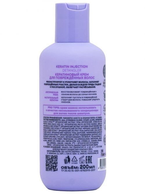 Крем для повреждённых волос "Keratin Injection" реконструирует и уплотняет волосы, заполняет повреждённые участки, делая каждую прядь гладкой и послушной, облегчает расчёсывание.