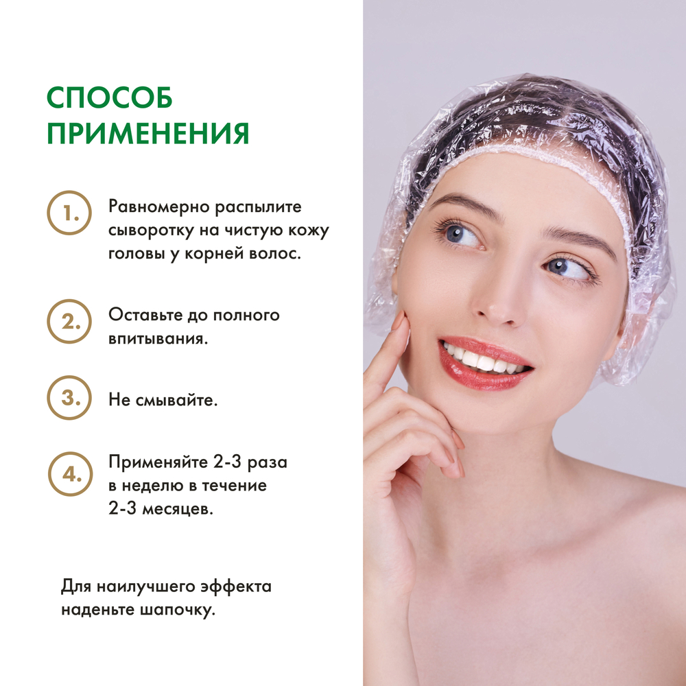 Равномерно распылите сыворотку на чистую кожу головы у корней волос. Оставьте до полного высыхания. Не смывайте. Применяйте 2-3 раза в неделю в течении 2-3 месяцев.Состав