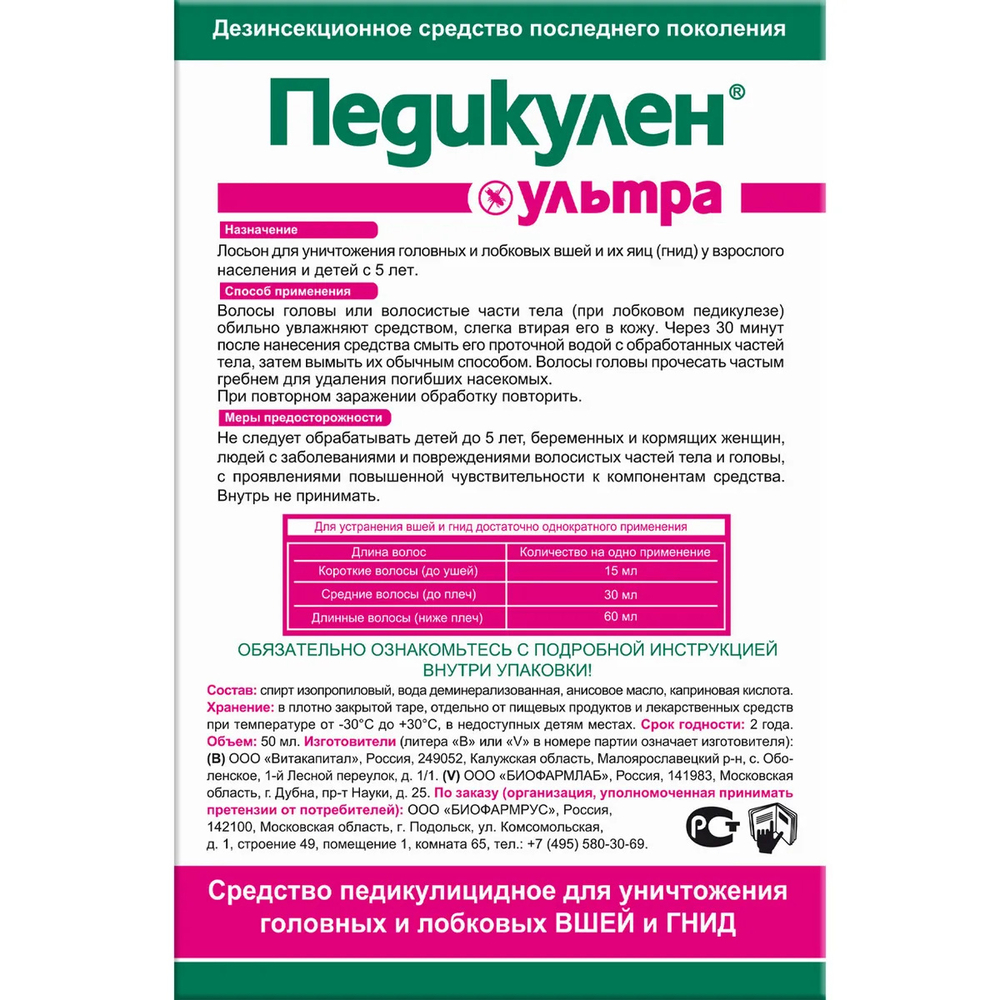 | Изготовитель | Педикулен |