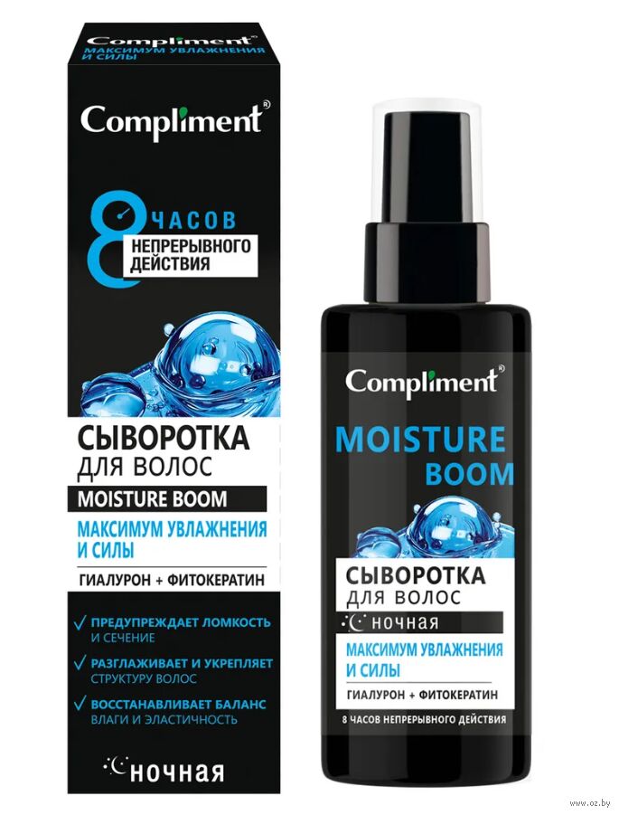 Ночная сыворотка для волос Compliment "Moisture Boom" восполняет потерю питательных веществ и влаги, утраченных в дневное время под воздействием внешних факторов. На протяжении 8 часов обеспечивает постепенное проникновение активных компонентов, увлажнение и укрепление структуры волоса.
