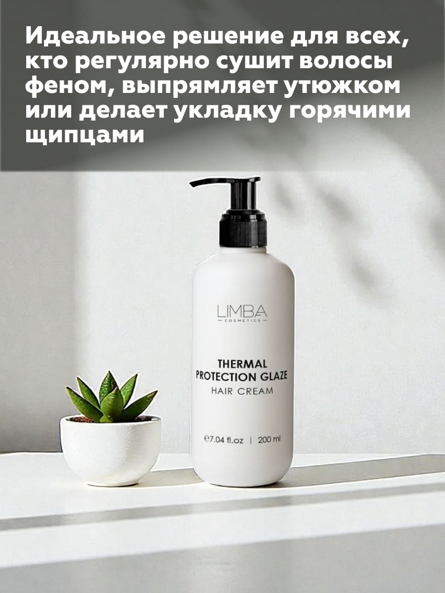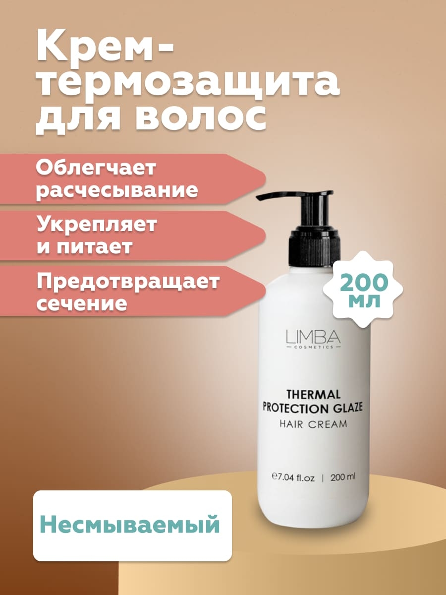 Крем-термозащита для волос Limba Cosmetics Thermal Protection Glaze Hair Cream – облегчает расчесывание и укладку, надежно защищая волосы от термических и механических воздействий.
