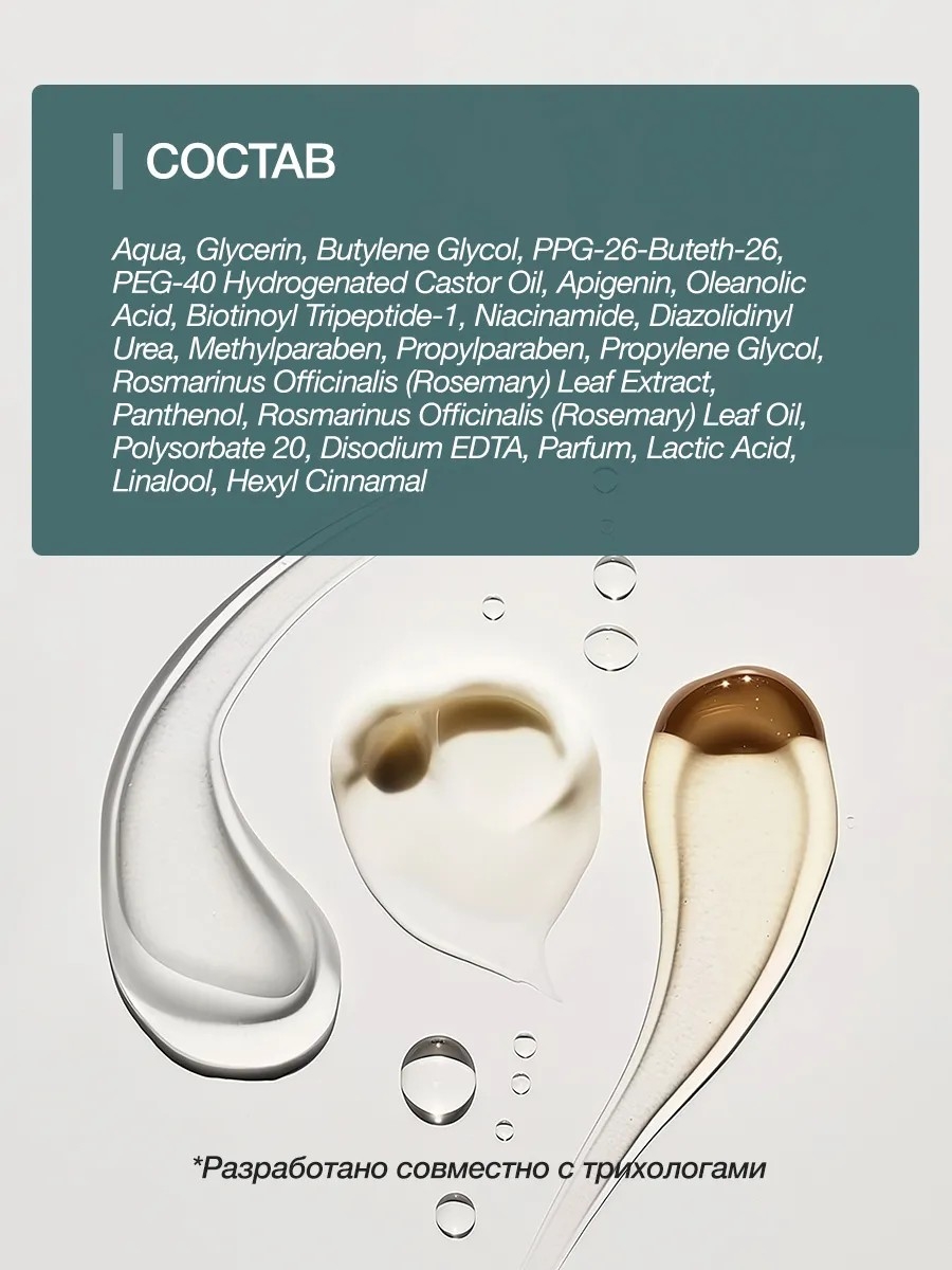 Преимущества: рост волос, укрепление корней и структуры волос, тонизация кожи головы.