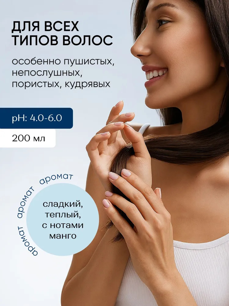 Крем имеет нежную текстуру, которая помогает разгладить и придать ухоженный аккуратный вид пушистым, непослушным волосам, а также преобразить кудрявые волосы. Активные компоненты в составе интенсивно ухаживают за волосами – облегчают расчесывание, устраняют спутанность и ломкость, возвращают мягкость и блеск.