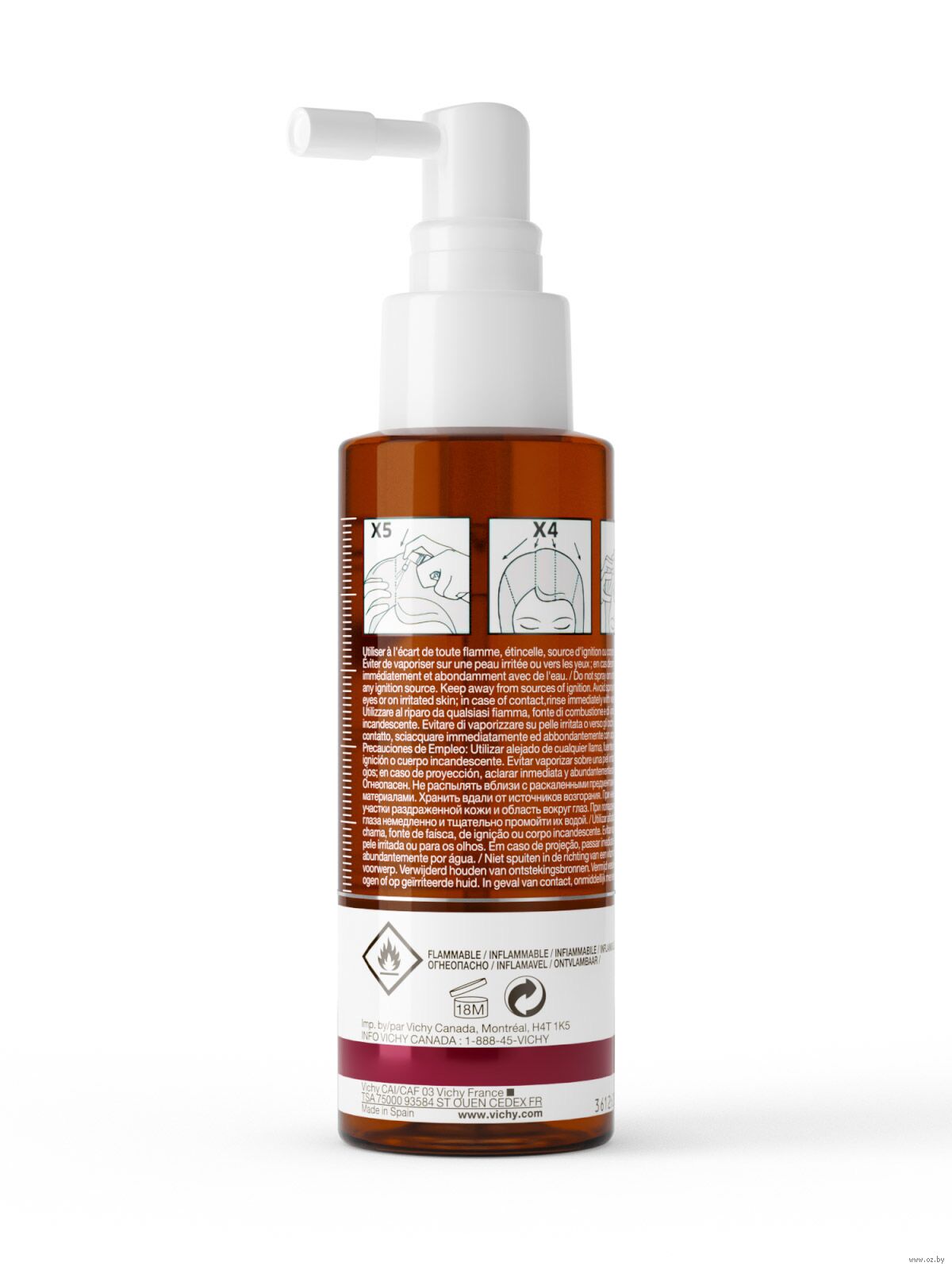 Разделите волосы на 4 пробора, распылите сыворотку на корни волос по 5 нажатий на каждый пробор и распределите по всей коже головы.Состав