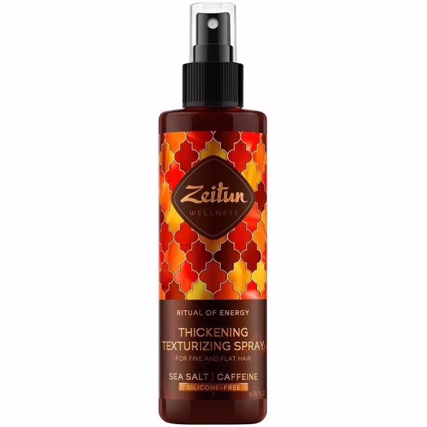 Текструрирующий спрей-кондиционер для объёма тонких волос "Ритуал энергии" с морской солью и кофеином Zeitun – средство для волос с натуральной несмываемой формулой, которая придает волосам моментальный объем и модную текстуру "пляжных локонов", уплотняет волосы по всей длине.