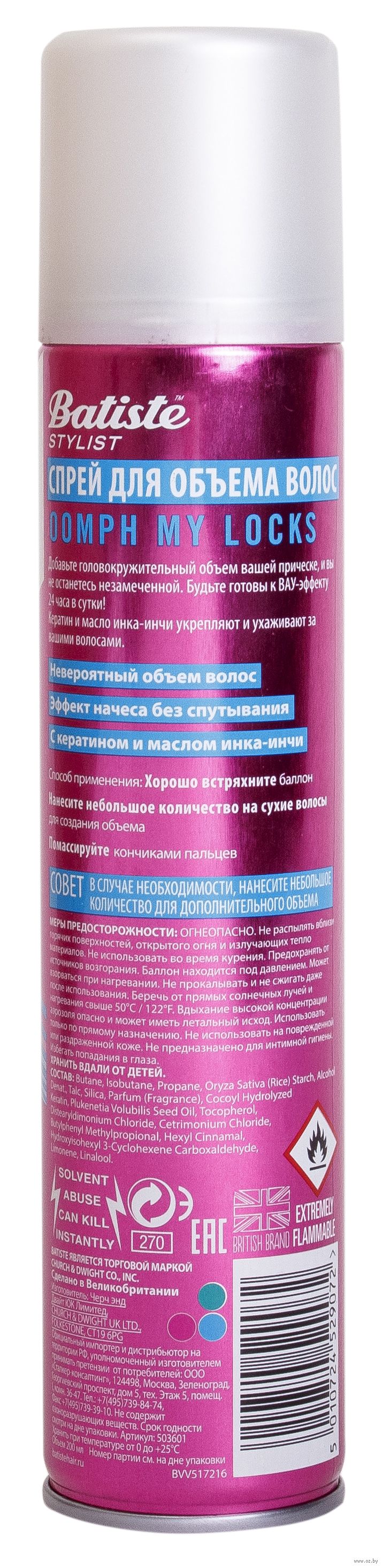 Спрей для объёма волос Batiste создан специально для использования на сухих волосах. Освежает волосы и удаляет излишки себума без использования воды, придаёт экстра-объём. Идеален для создания причёсок.