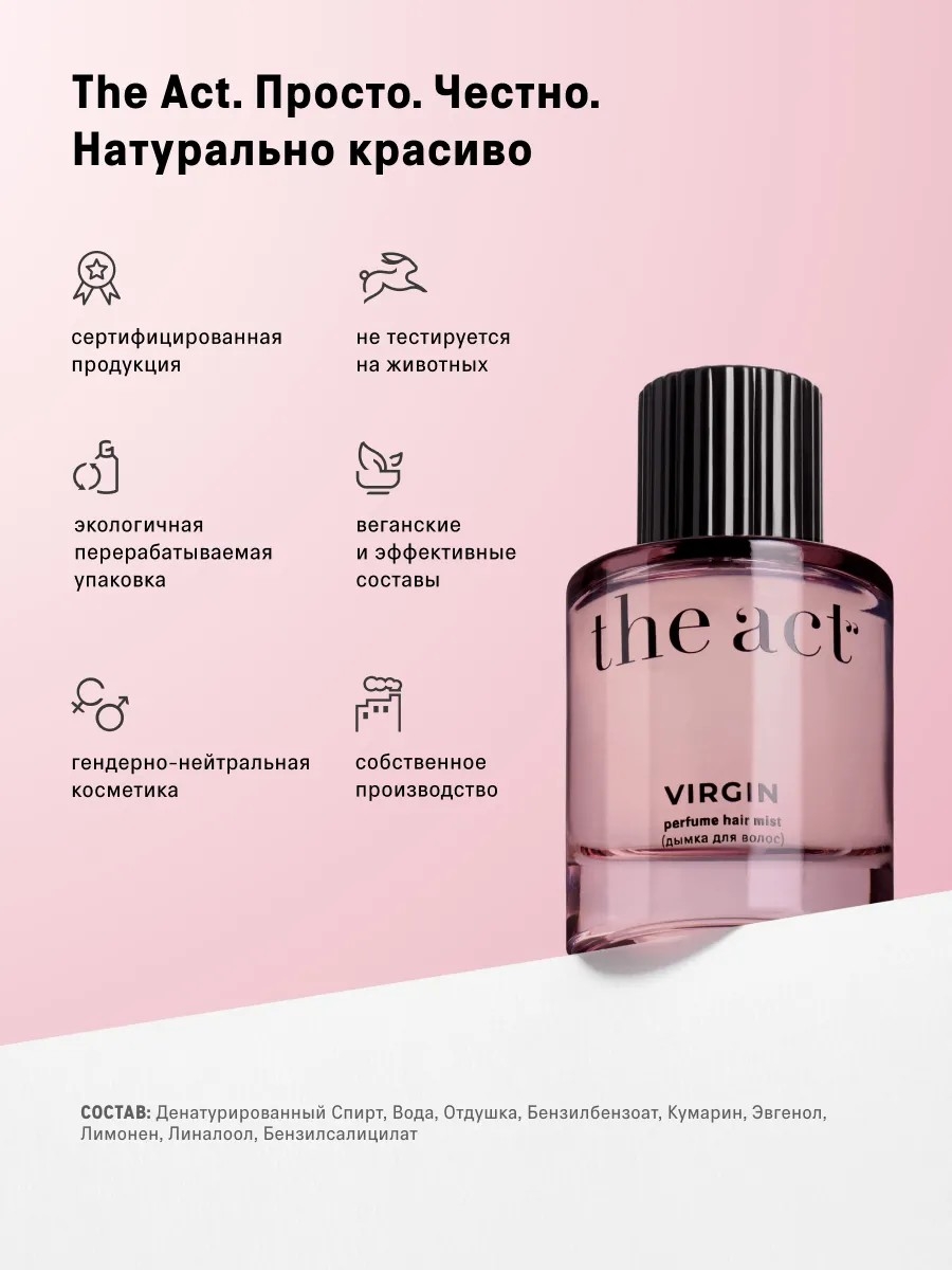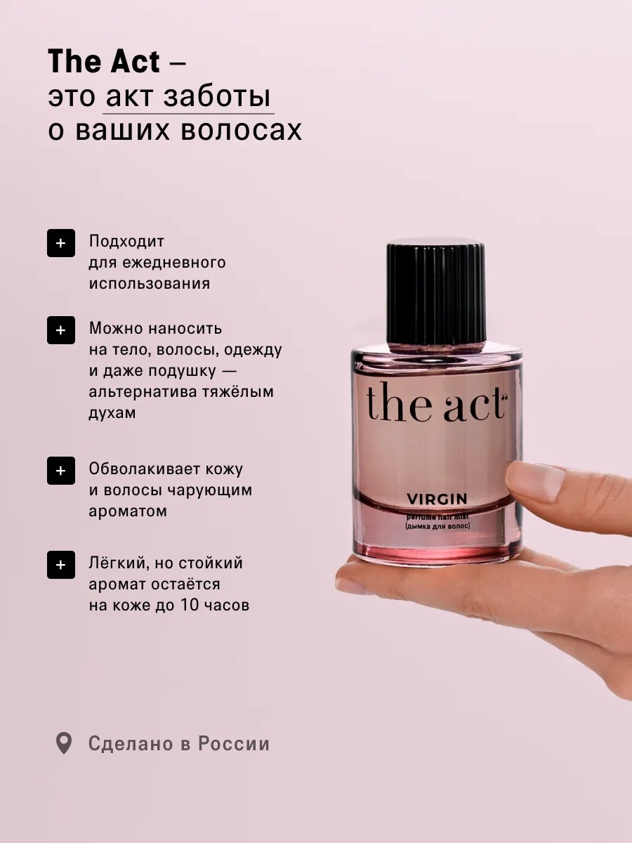 Мист для волос Virgin The Act окутывает волосы ароматной вуалью, оставляя шлейф цветущей сакуры на коже и волосах, который продержится до 10 часов.