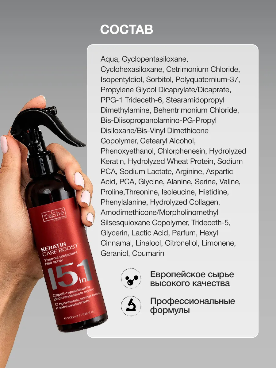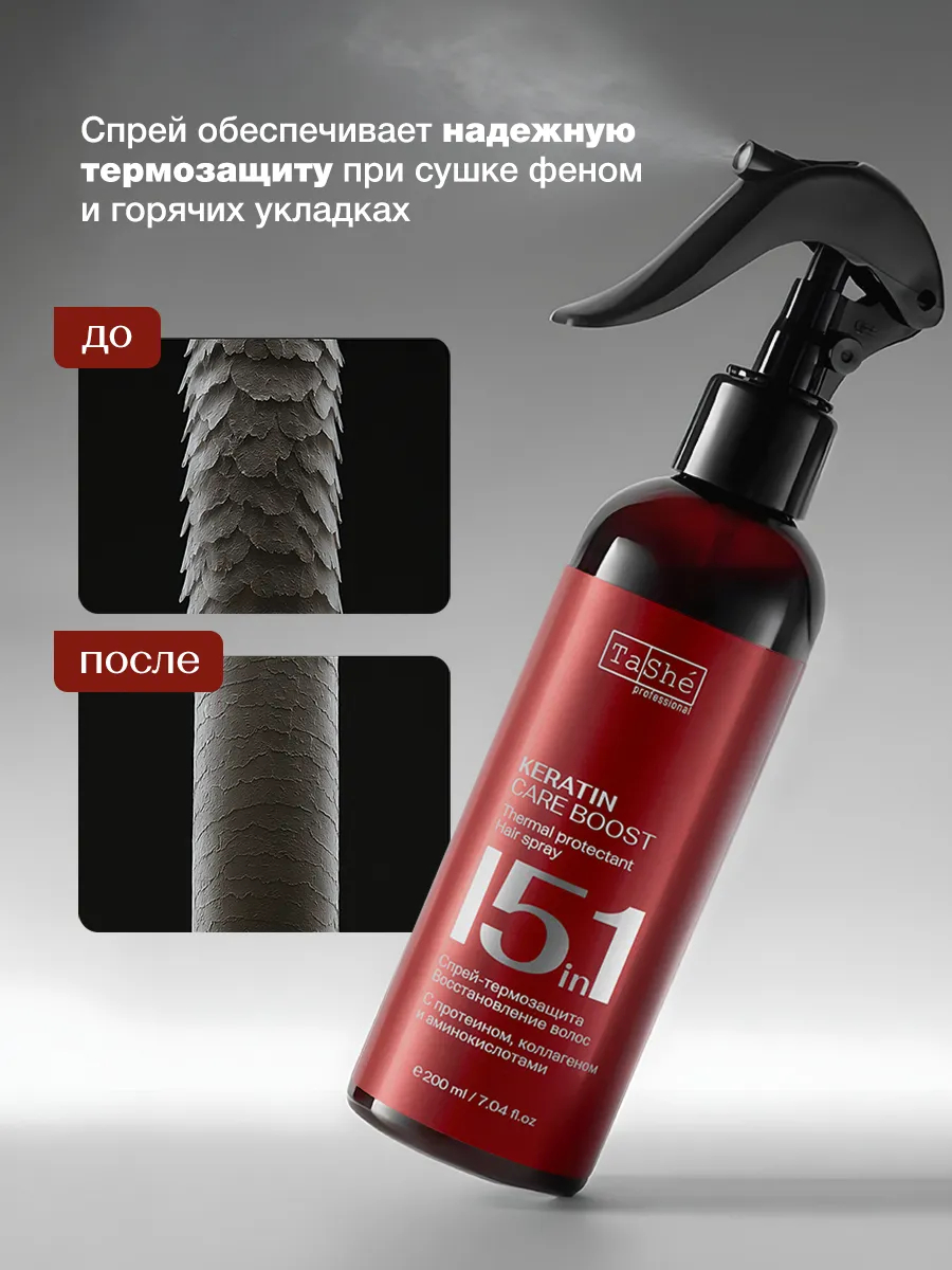 Спрей 15 в 1 обеспечивает надежную термозащиту при сушке феном и горячих укладках. Облегчает расчесывание, устраняет спутанность и пушистость, делая волосы гладкими, ухоженными и блестящими.