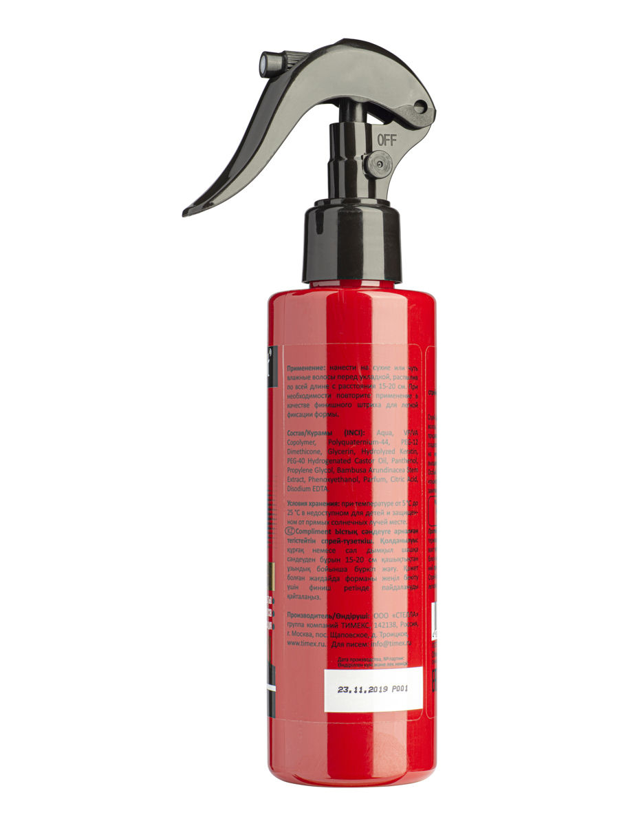 Профессиональная формула спрея для волос термозащита идеально справляется со своей основной задачей-защитой волос от высоких температур при использовании утюжка, фена и плойки (до 220 градусов).