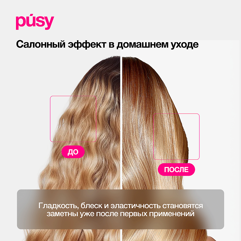 Формула на основе гидролизованного кератина и аминокислотного комплекса эффективно заполняет повреждения и запечатывает кутикулу, создавая эффект ламинирования.