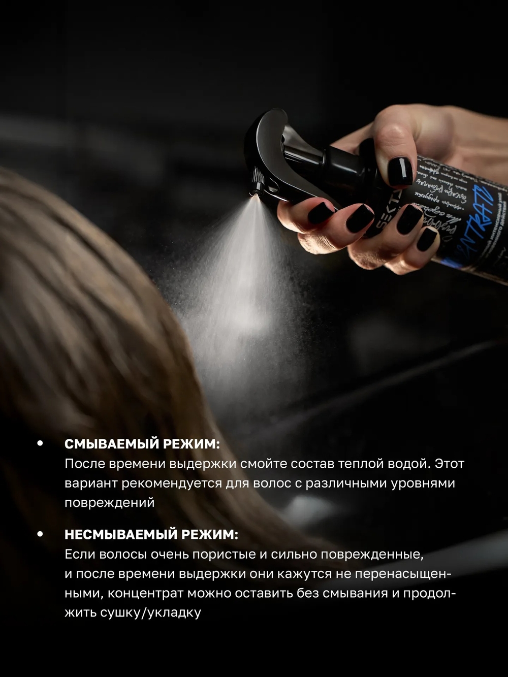 Перед использованием интенсивно взболтайте флакон. Нанесение. Нанесите продукт на влажные волосы после мытья шампунем. Рекомендуемая последовательность: Шампунь > Маска > Концентрат > Кондиционер. Выдержка.Состав