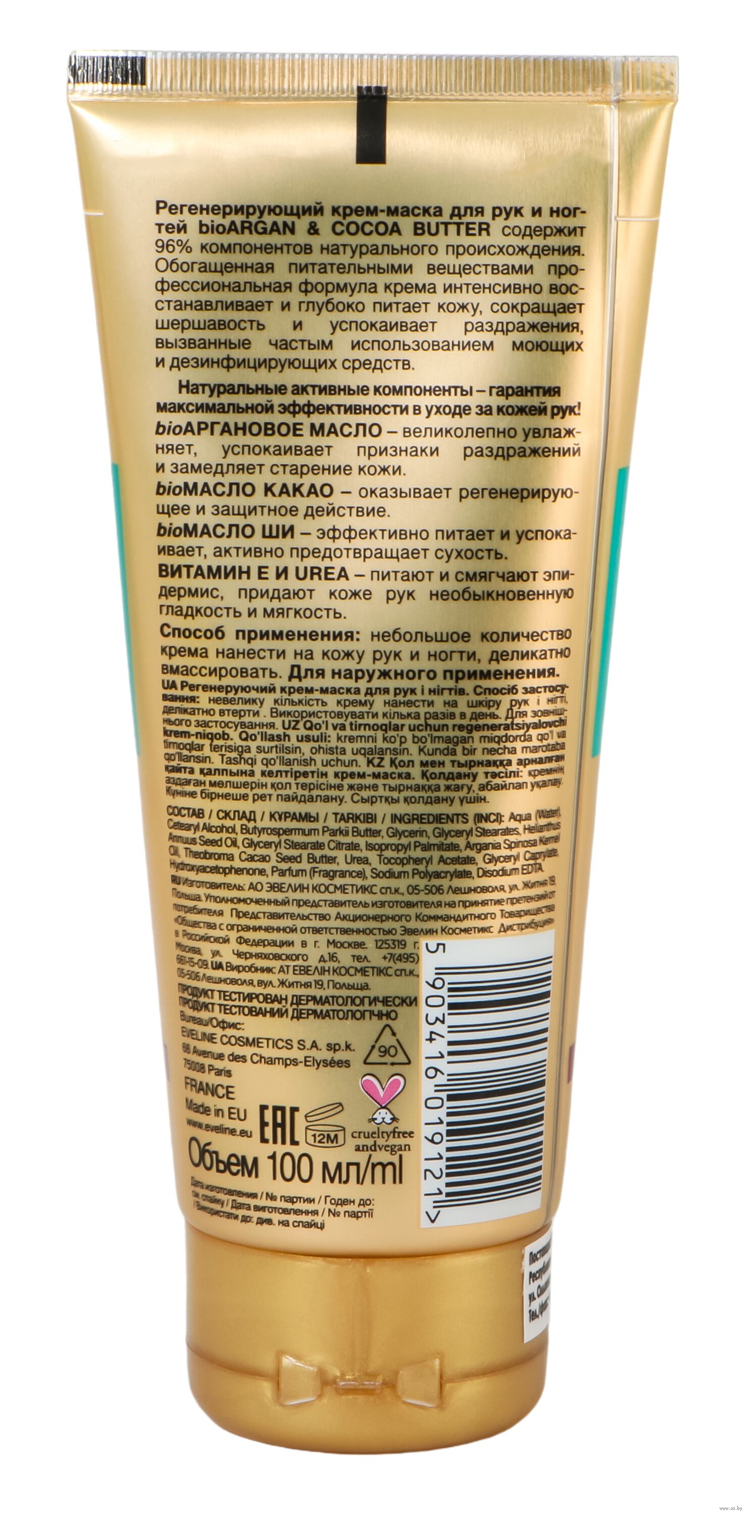 На помощь придет восстанавливающая крем-маска для рук и ногтей, формула которой основана на аргановом масле, так называемом золото Марокко. Также состав продукта обогащен маслами какао и ши, витамином Е и UREA (мочевиной). Благодаря этому крем интенсивно увлажняет шершавую кожу рук, успокаивает различные раздражения, возникающие во время использования моющих или дезинфицирующих средств, придает чувство комфорта, а также питает ее, делает кожу необыкновенно гладкой и мягкой.