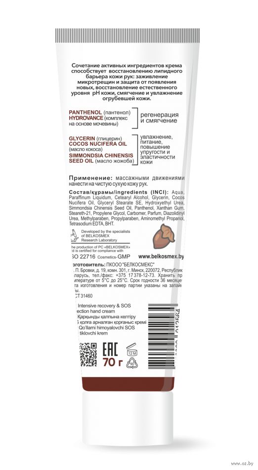 Массажными движениями нанести на чистую сухую кожу рук.Состав