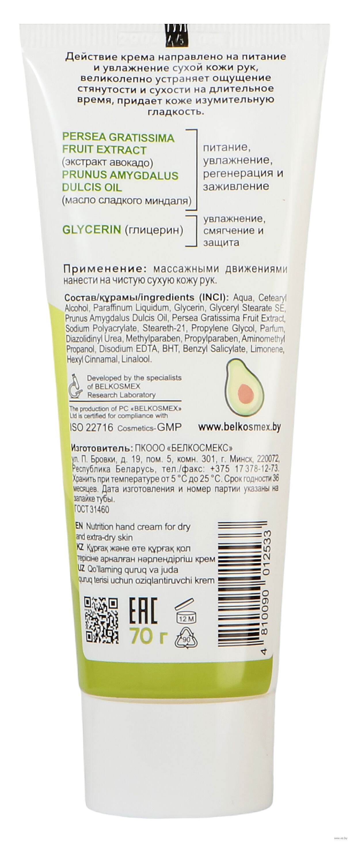 Persea gratissima fruit extract (экстракт авокадо) Prunus amygdalus dulcis oil (масло сладкого миндаля) питание, увлажнение, регенерация и заживление.
