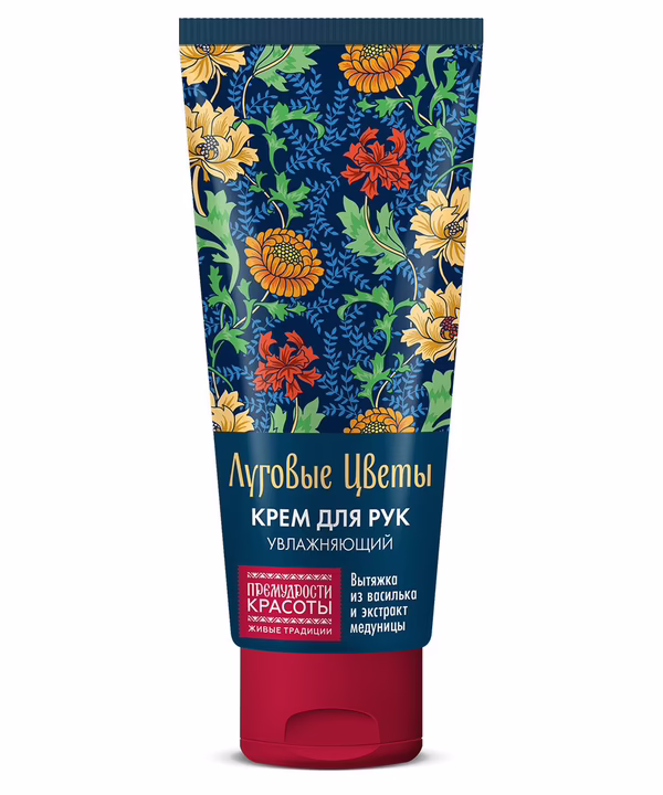 Увлажняющий крем для рук "Луговые цветы" – полезное снадобье для нежной кожи рук, глубоко насыщает влагой и витаминами. Вытяжка из василька питает кожу рук, придает бархатистость и защищает. Экстракт медуницы обладает защитным действием и придает удивительную мягкость.