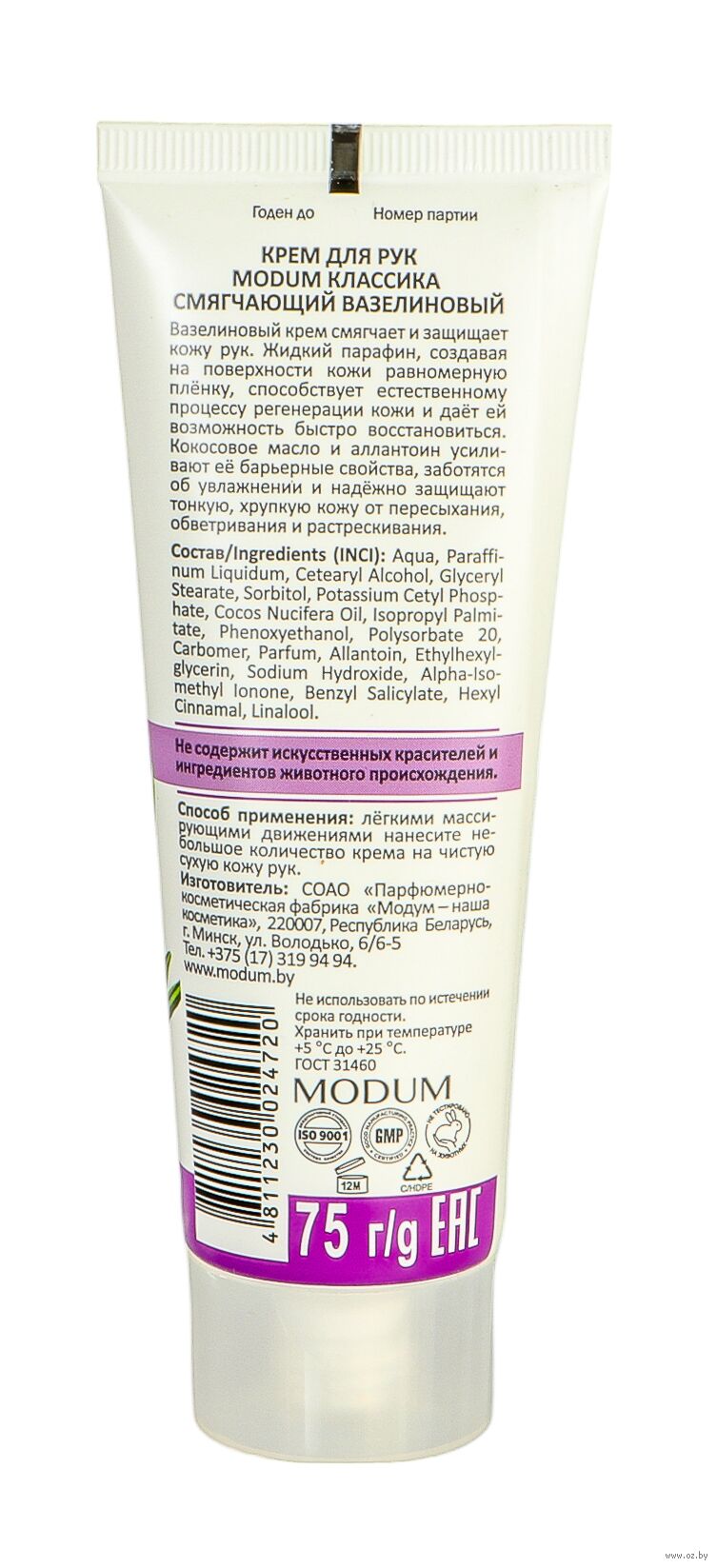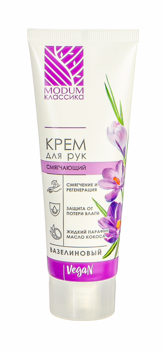 Вазелиновый крем смягчает и защищает кожу рук. Жидкий парафин, создавая на поверхности кожи равномерную плёнку, способствует естественному процессу регенерации кожи и даёт ей возможность быстро восстановиться.