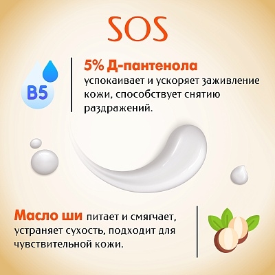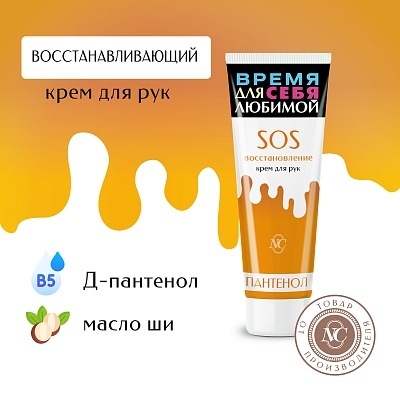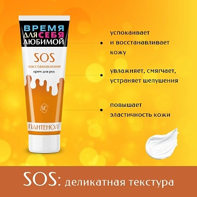 Крем для рук "SOS-восстановление". Обладает деликатной, питательной текстурой, не содержит отдушек.