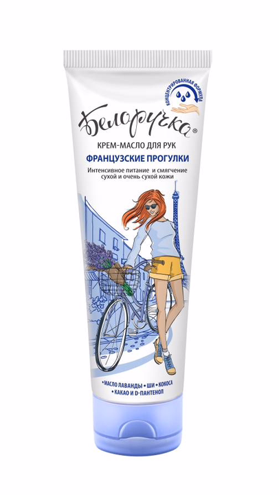 Расслабиться, помечтать о путешествиях и восстановить кожу рук после активного дня поможет крем-масло "Французские прогулки" с приятным ароматом лаванды. Благодаря высокой концентрации питательных масел крем-масло насыщает кожу необходимыми компонентами, быстро смягчает и надолго устраняет сухость.